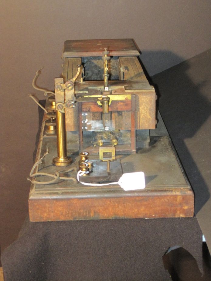 Object Desc (Large horseshoe-shaped permanent magnet) similar to I.4.08, includes vertical suspension frame, galvanometer coil, mount for damper, partial paper path. P.Hoenack, maker, New York. Base dims: 10-7/8" x 25-1/16"