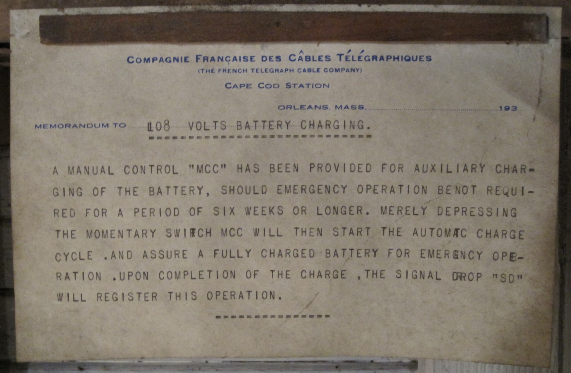 Object Desc Station made- French Telegraph Cable Co. 1938